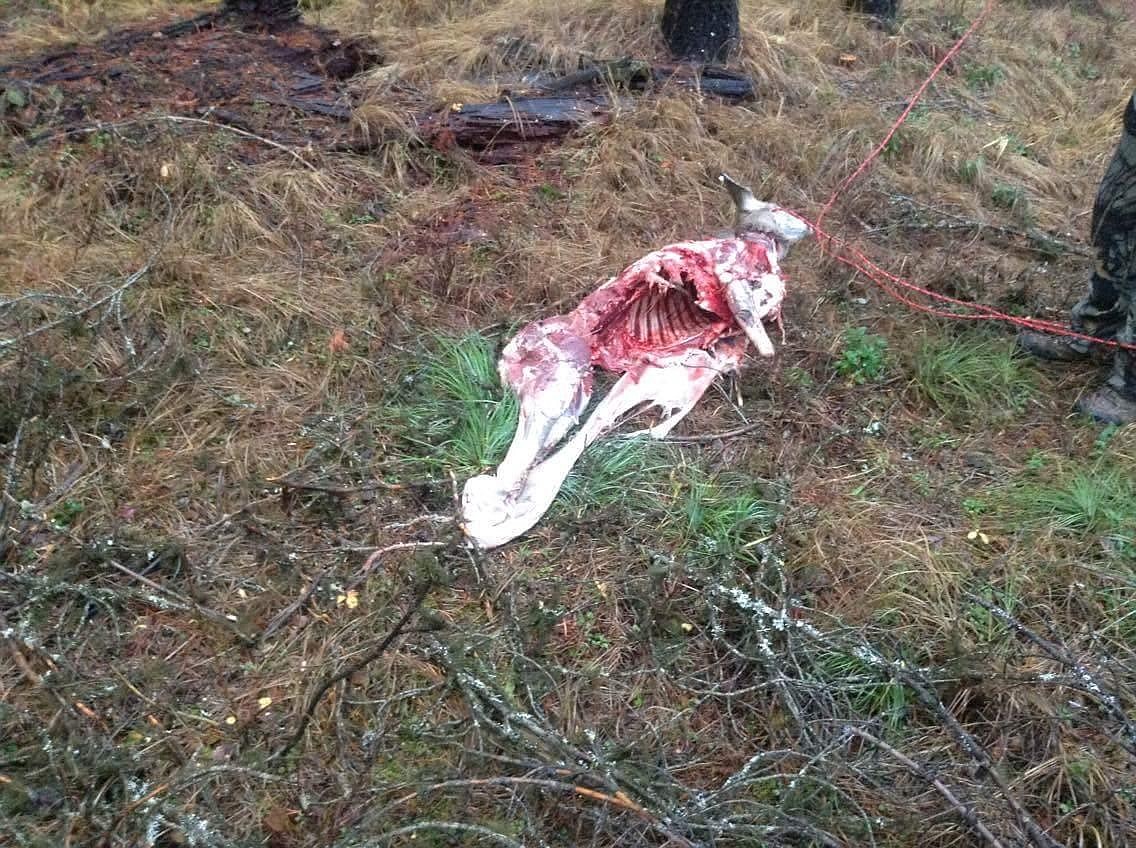 After hanging the carcass overnight, Carrillo woke to find his prized deer gone. A quick search revealed what was left of the mangled carcass lying clear across the campsite, dragged by nothing less than another bear.
