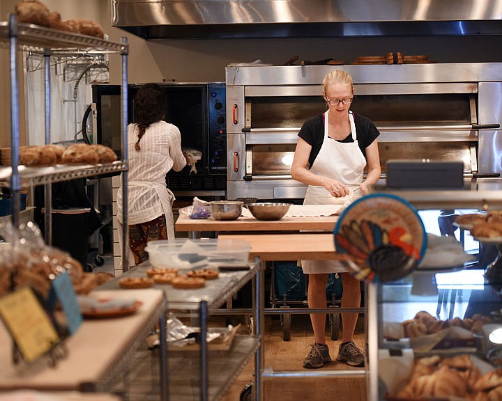 Kendra Hope bakes fresh bread at Uptown Hearth on Wednesday, November 16, in Columbia Falls. They have switched to their winter hours and are currently open from 7:30 a.m. to 4 p.m. on Wednesdays, Thursday, and Fridays. However, on Friday, December 2, they'll extend their hours for the Night of Lights parade and in the evening they'll be joined by Azul Coffee Bar. (Brenda Ahearn/Daily Inter Lake)