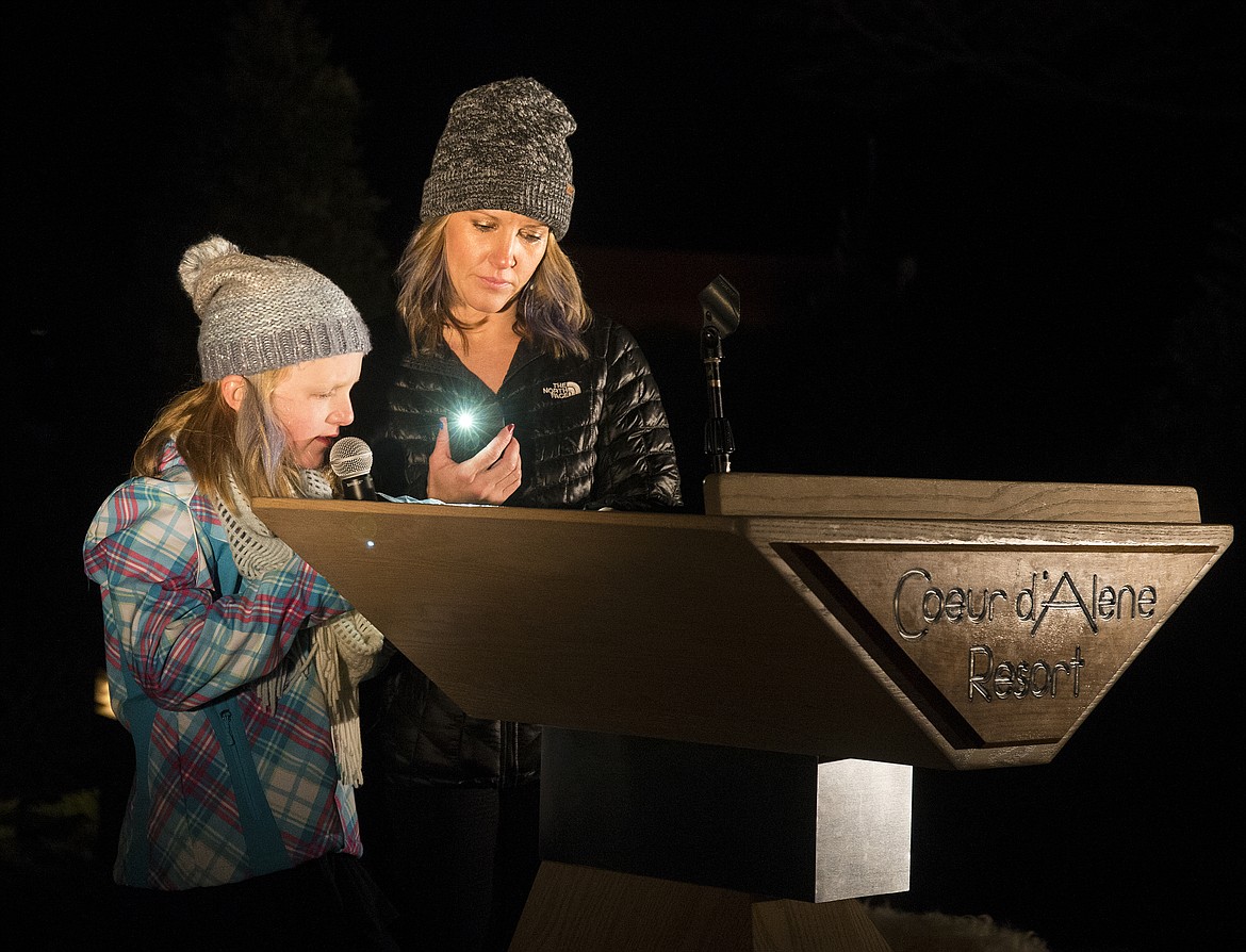 COEUR d'ALENE — Hailie Velasco stepped to a lectern set up near The Coeur d’Alene Resort clock tower the night of Nov. 17 and proceeded to start a group countdown.