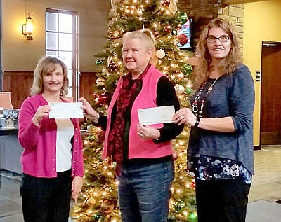 Lincoln County Credit Union President Chari Lucas, left, and Linsey Beaty, right, present checks totaling $2,000 to Barb Guthneck, Executive Director for the Lincoln County Crisis Solutions. The checks will go toward Libby's Closet and Shopko to provide clothing for children in domestic violence shelters.