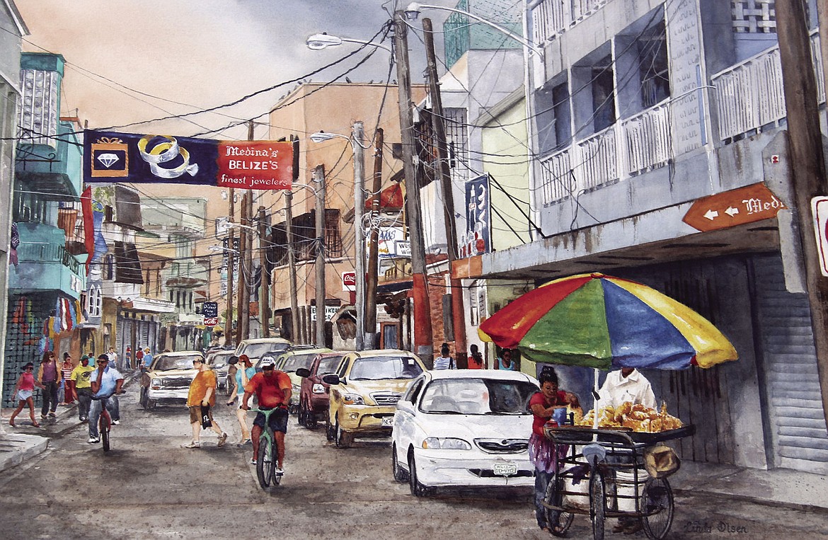 Olsen, a Kalispell resident, bested a field of 90 artist participants in a variety of mediums in the 15th annual showcase. Her bright, vibrant painting depicts a narrow city street, framed by buildings and crowded with vehicles and pedestrians.