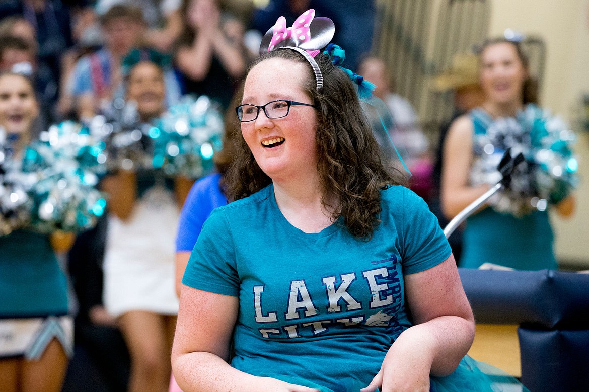 The room erupted in cheers as the senior walked out to the center of the gym floor wearing her school spirit tutu. Someone started a chant, and the entire school was soon cheering “We love ‘Kayla, We love ‘Kayla.”
