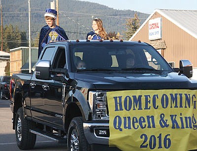 Homecoming King Reed Christensen and Queen Annie Berget leading the class’s floats during Thursday’s homecoming parade. (Bethany Rolfson/TWN)
