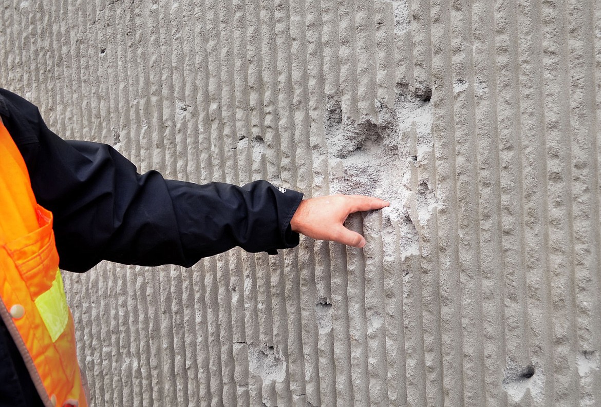 Construction crews working on the $34 million road project found the damaged wall Tuesday morning near Three-Mile Drive. It appeared someone used a steel stake to stab and bore holes into the specialized concrete. The walls were built to suppress traffic noise from disturbing the neighborhood at Empire Loop, west of the bypass.