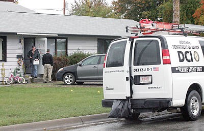 Crime scene investigators at the residence of Sheena Devine, 404 W. Third, Apt. B Friday afternoon. (Paul Sievers/TWN)