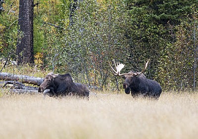 A bull moose pursues a cow in Glacier National Park last week. (Chris Peterson/for TWN)