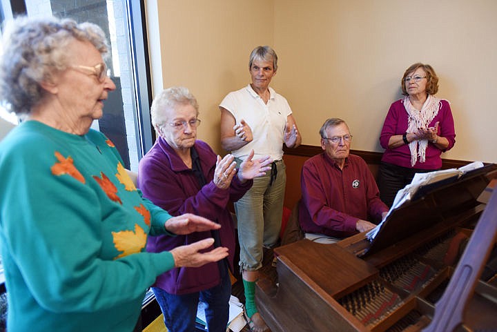 Singing songs and playing on the donated baby grand piano started off the ribbon cutting ceremony at the Agency on Aging on Wednesday, October 12, in Kalispell. (Brenda Ahearn/Daily Inter Lake)