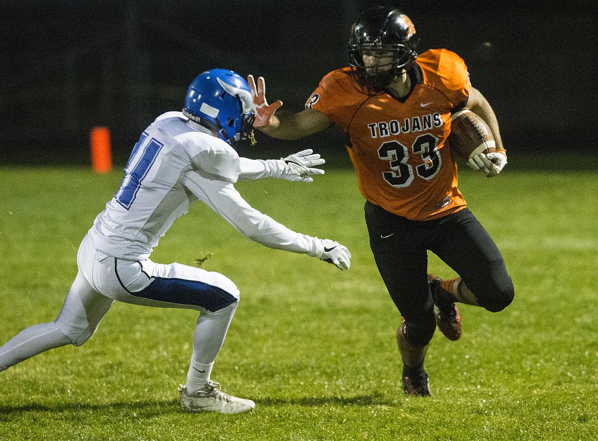 Post Falls opened the scoring on a 45-yard touchdown pass from Matthew Mills to Nate Buer, then cut the deficit to 21-13 on a 6-yard strike from Buer to Quin Bennett with 6:03 remaining in the third quarter. Coeur d’Alene scored 27 straight points to put the game away before the Trojans punched in a pair of scores after recovering fumbles deep in Vikings territory.
