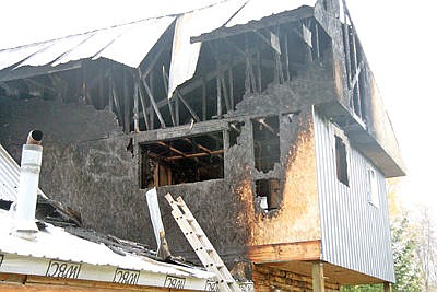 Close-up of the damages left by a fire Thursday night off of Falcon Trail. (Bethany Rolfson/TWN)