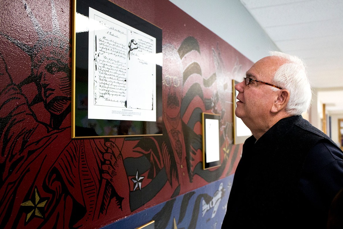 To celebrate that connection, graduates of the class of 1959 joined with faculty, teachers and students Wednesday morning to dedicate the new "Freedom Shrine" the '59 grads donated to the school.