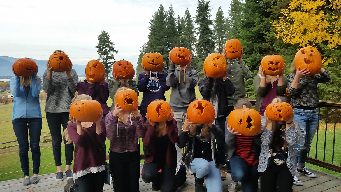 The SHS Interact Club hosted six of this year's exchange students at SHS counselor Jeralyn Mire's home in Sagle for the pumpkin carving event. With pumpkin seeds "flying everywhere," Mire said it was a lot of fun to see the students enjoying the experience, which also included a fire, hot dogs, s'mores and roasted pumpkin seeds.