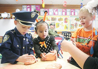 Aidan, Alexa and Noah of the Libby Public Preschool dressed up for Halloween on Friday. (Bethany Rolfson/TWN)