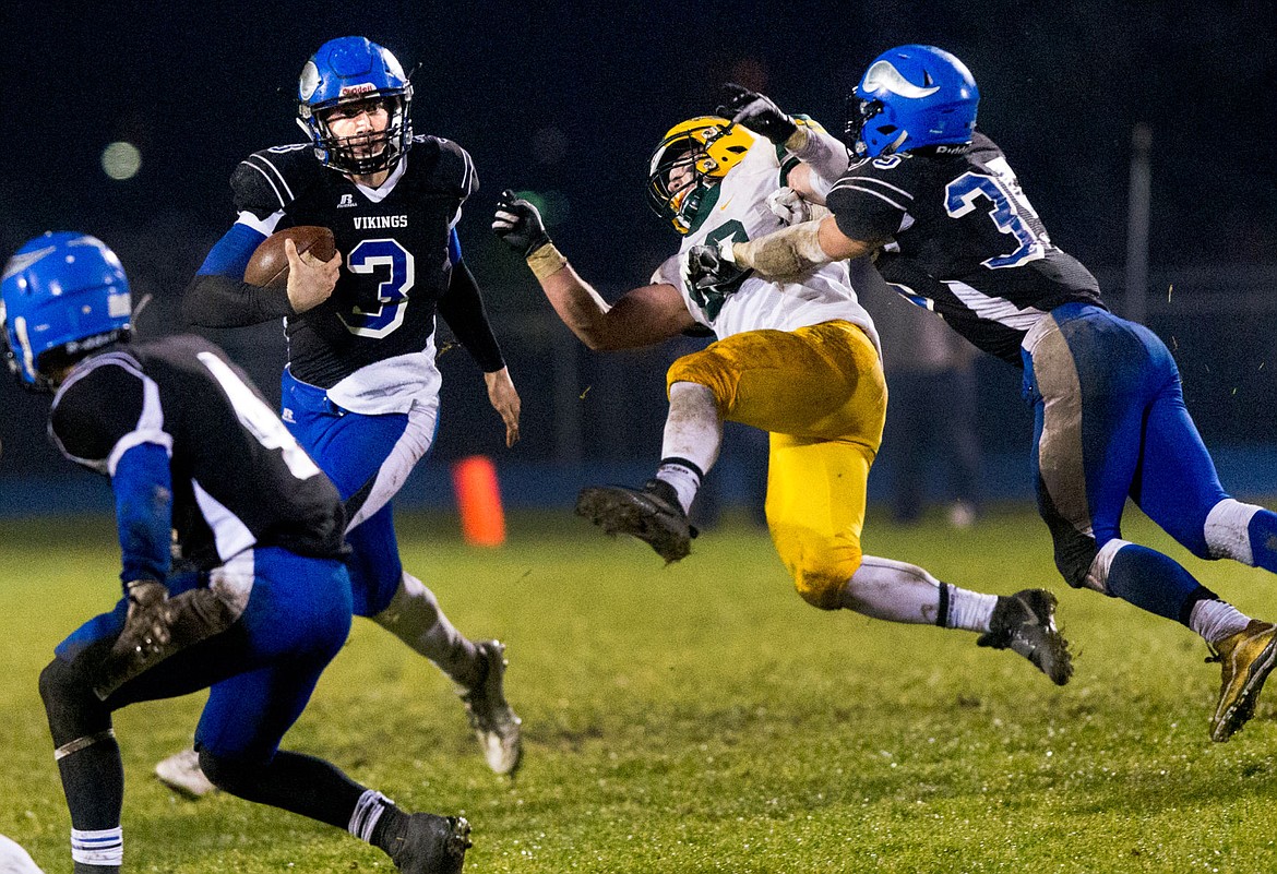 Coeur d’Alene held Borah to 37 net rushing yards. Senior Kegan Lester came into the game as the second-leading rusher in the 5A Southern Idaho Conference, with 1,347 yards and 11 touchdowns. But the Vikings bottled him up, holding him to short gains and a total of 81 yards on 27 carries.