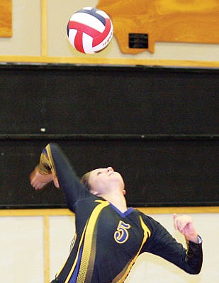 Senior Shasta Wilson bumps the ball during their last game of the season against Bigfork. The ladies ended their season in Florence after three games.