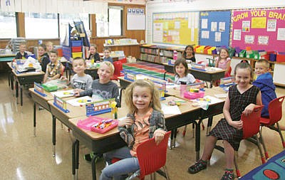 Mrs. Foss’s first grade class preparing for their first day of school. (Bethany Rolfson/The Western News)