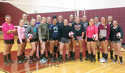 The 2016-2017 Troy Volleyball Team. Back row, left to right: Ashley Gromley (Junior Varsity), Ella Pierce (C-Squad), Sarah Pierce (Varsity), Katelyn Tallmadge (C-Squad), Montana Rice (C-Squad), Alyssa Lewis (Varsity), Sami Roerich (Varsity), Allie Coldwell (Varsity) and Heather Lyons (Junior Varsity). Front Row, left to right: Olivia Short (Junior Varsity), Kylie Carr (Junior Varsity), Sarah Shadden (C-Squad), Olivia Roach (Varsity), Kaitlyn Downy (Varsity), Allie Brown (Varsity), Mazzy Hermes (C-Squad), Kami Finley (C-Squad) and Harle Huisentruit (C-Squad).