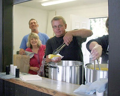 Dennis Watson serving grilled and boiled corn at the inaugural corn feed. (Bethany Rolfson/The Western News)