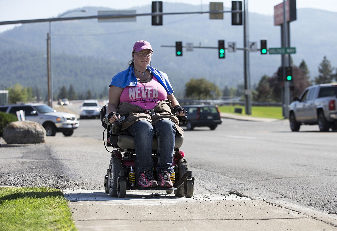 That means she has had to find the best possible routes for her chair from her apartment near Treaty Rock to Super 1 Foods and other businesses since moving to Post Falls from Coeur d'Alene two months ago.