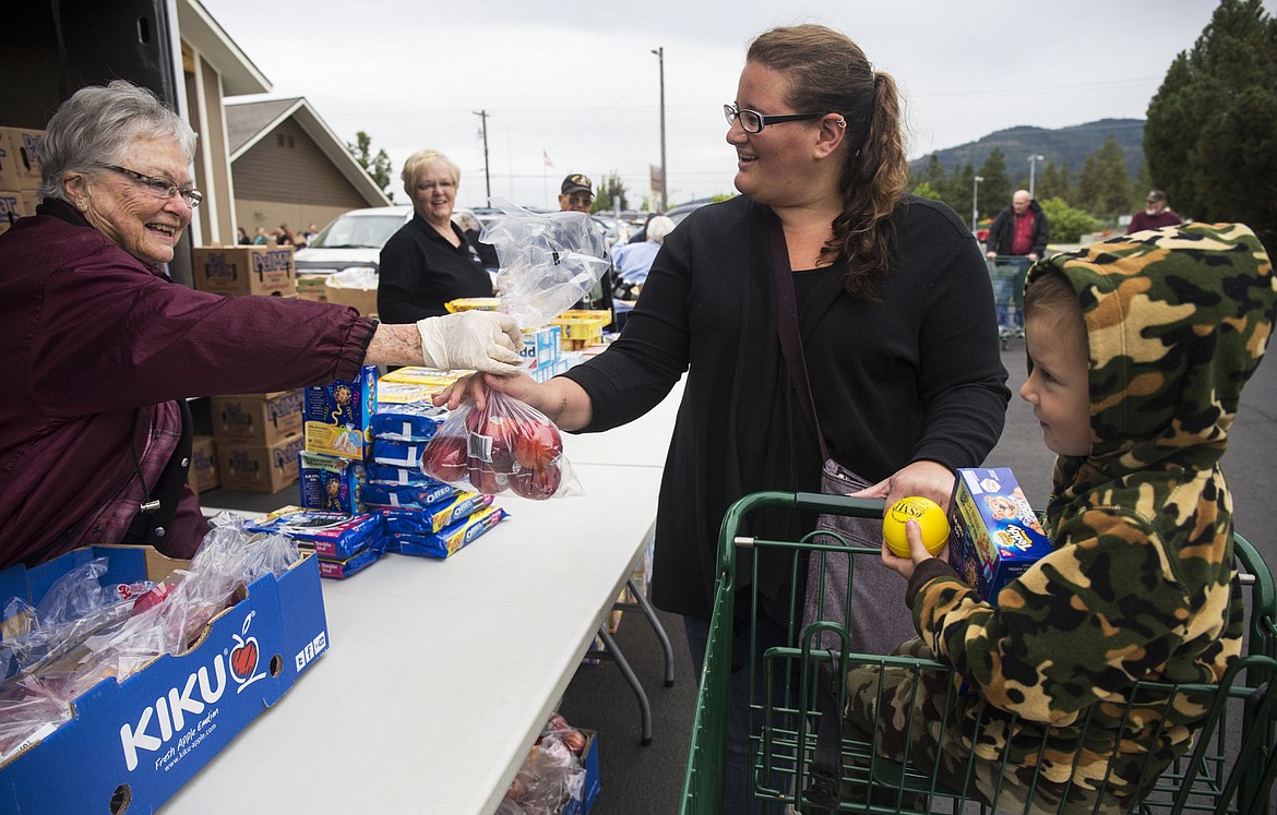 The Post Falls woman was among 535 people who received nearly 14,000 pounds of free food, materials to cut energy costs, health care and other items and services on Tuesday at the Post Falls Senior Center.