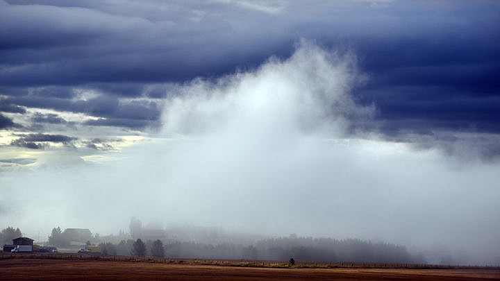 A dense fog sweeps across the farms north of Kalispell on Wednesday morning, September 7. (Brenda Ahearn/Daily Inter Lake)