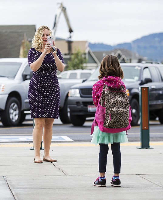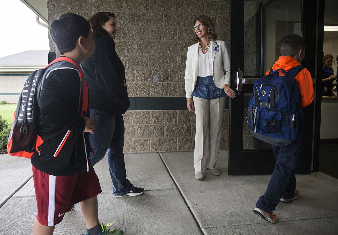 Principal Kathy Baker stood at the entrance of Greensferry Elementary School Tuesday morning, greeting many students by name. Schoolkids walked up to the new building wearing new outfits and carrying new backpacks, their parents in tow.