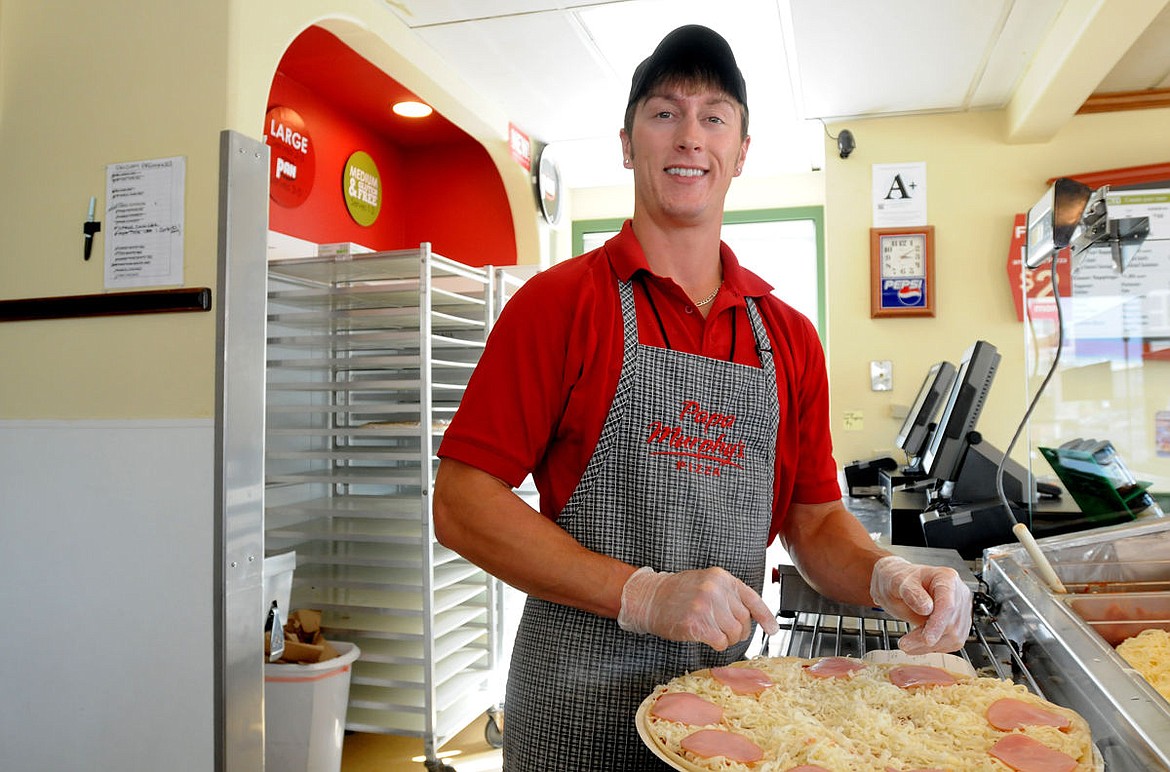 Tyler Wilkonski, the owner of Papa Murphy's in Kalispell, makes a pizza on Thursday. (Aaric Bryan/Daily inter Lake)