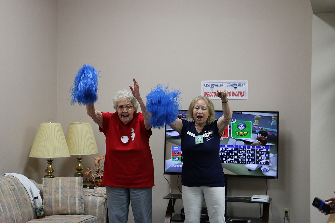 The social aspect of the event is one thing Perchynski said is a benefit for the seniors. The teams joked back and forth and the cheerleader for each team would make light jabs, but always applauded each other when someone got a strike or a "hambone."