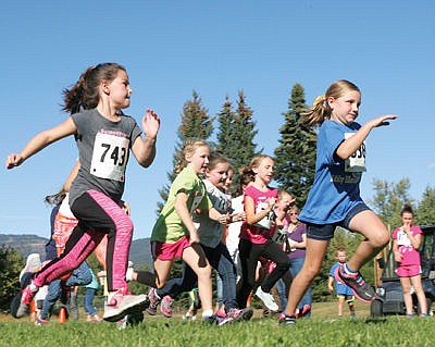 Eight-year-old girls off and running, Runnerfell 2016. (Paul Sievers/The Western News)