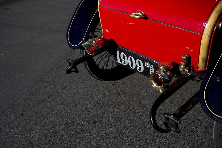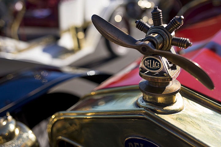 <p>A propeller ornament adorns the hood of a 1909 Delage "R" Voiturette at the 19th Annual Regional "Pandhandle Scramble" Tour. More than 100 horseless carriage enthusiasts drive their vintage cars that are at least 100-years-old through St. Maries, Hayden Lake, Coeur d'Alene and Bayview in the annual tour. The Skagit-Snohomish Region of the Horseless Carriage Club of America organizes the annual event.</p>