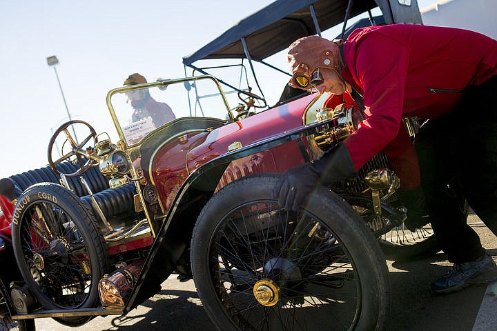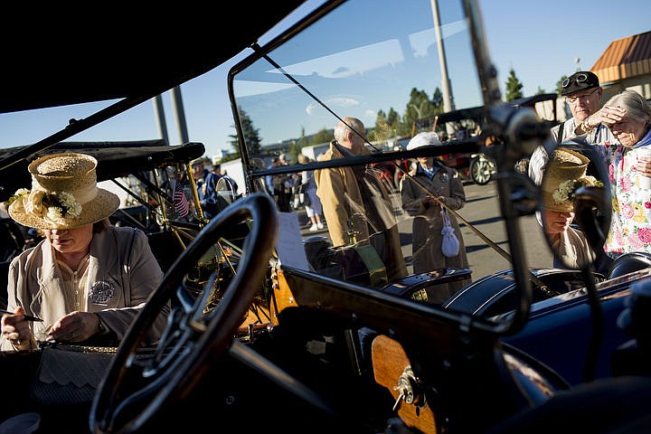 <p>Rinda Shaw of Vancouver, Wash. prepares her 1913 Buick Model 31 for a tour to Hayden Lake on Tuesday as part of the19th Annual Regional "Pandhandle Scramble" Tour. More than 100 horseless carriage enthusiasts drive 51 vintage automobiles that are at least 100-years-old through St. Maries, Hayden Lake, Coeur d'Alene and Bayview in the annual tour. The Skagit-Snohomish Region of the Horseless Carriage Club of America organizes the annual event.</p>