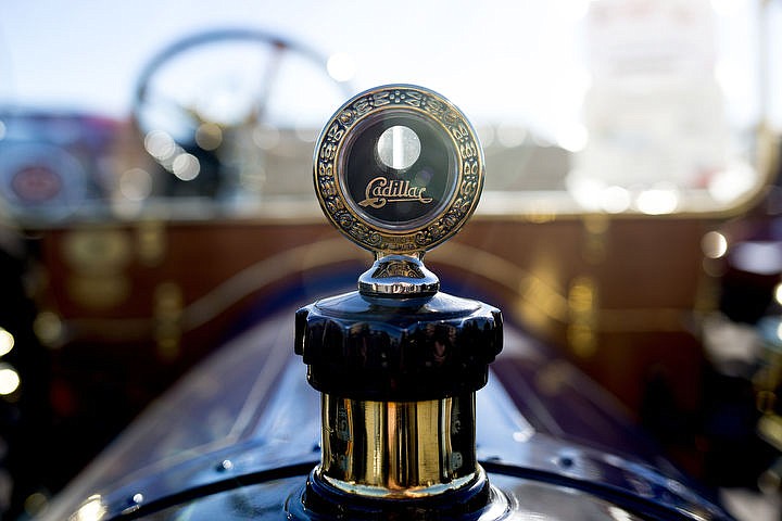 <p>A hood ornament adorns the front end of a Cadillac horseless carriage at the 19th Annual Regional "Pandhandle Scramble" Tour. More than 100 horseless carriage enthusiasts drive their vintage cars that are at least 100-years-old through St. Maries, Hayden Lake, Coeur d'Alene and Bayview. The Skagit-Snohomish Region of the Horseless Carriage Club of America organizes the annual event.</p>