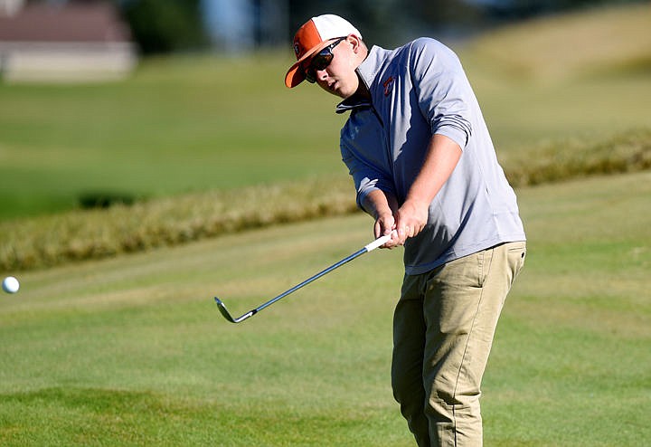 Flathead senior Rielly Manger chips to the green during the Kalispell Invitational Golf Tournament on Sept. 14, at Northern Pines Golf Course. (Brenda Ahearn/Daily Inter Lake)