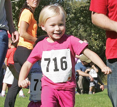 Abigail Cutsforth is off and running in the three and under division, Runnerfell 2016. (Paul Sievers/The Western News)