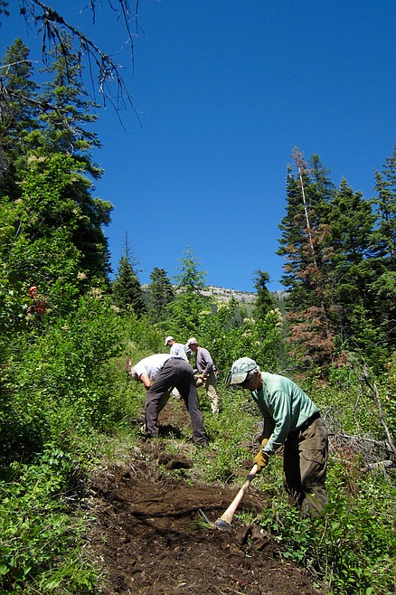 Soonest on the schedule is a two-day push to finish the realignment of the lower portion of Scotchman Peak Trail No. 65. Friday and Saturday, September 23 and 24, the FSPW All Stars trail crew will put the finishing touches on the new tread at the lower end of the trail. Volunteers who wish to camp at the trailhead will be treated to dinner on Friday and breakfast on Saturday. A formal dedication of the new portion of trail will be held on Saturday afternoon at 4:00.