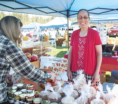 Leona Mast of Farm to Market Store & Bakery/Deli selling baked goods and fresh fruits and vegetables at the Kootenai Harvest Festival on Friday. (Bethany Rolfson/The Western News)