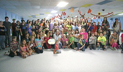 Patty Hardgrove showing off the 40th anniversary cake along with over 100 kids. (Bethany Rolfson/The Western News)