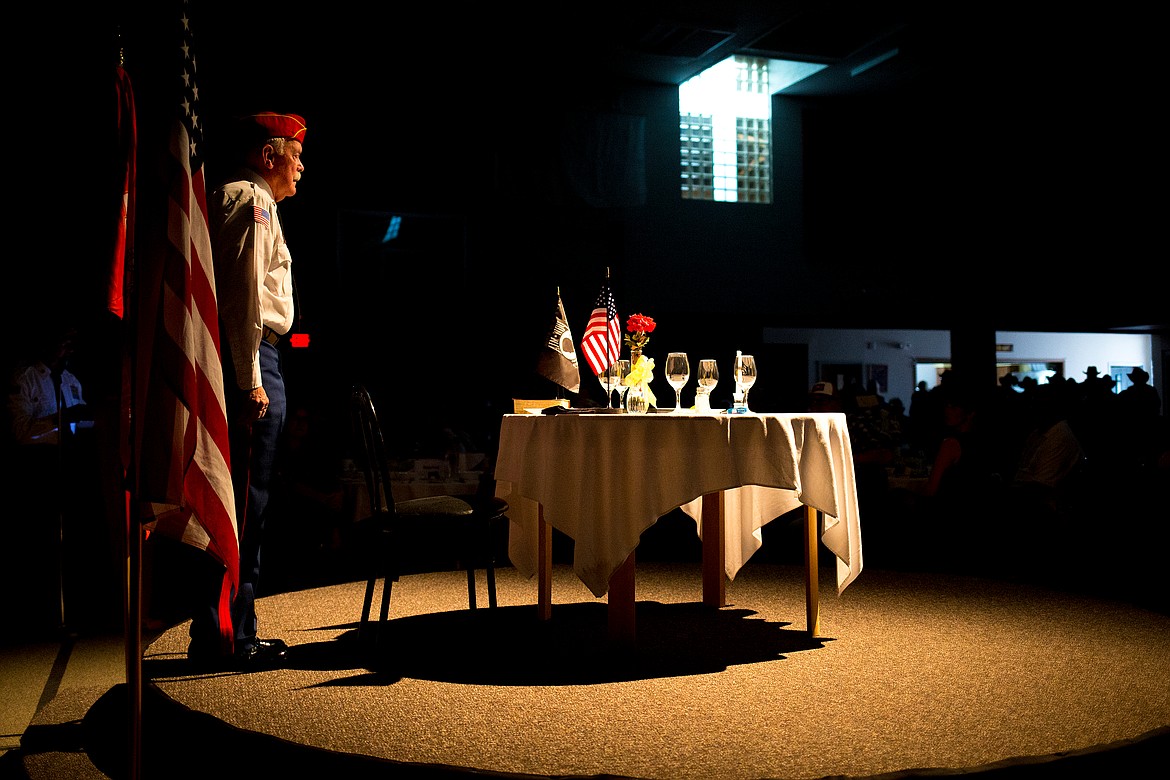 The lone, empty chair made it clear the missing and the fallen were not present.
