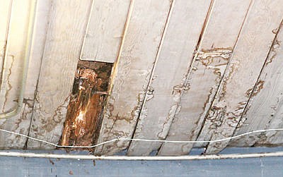 Leak in the roof of the LVFD, northeast corner of building.