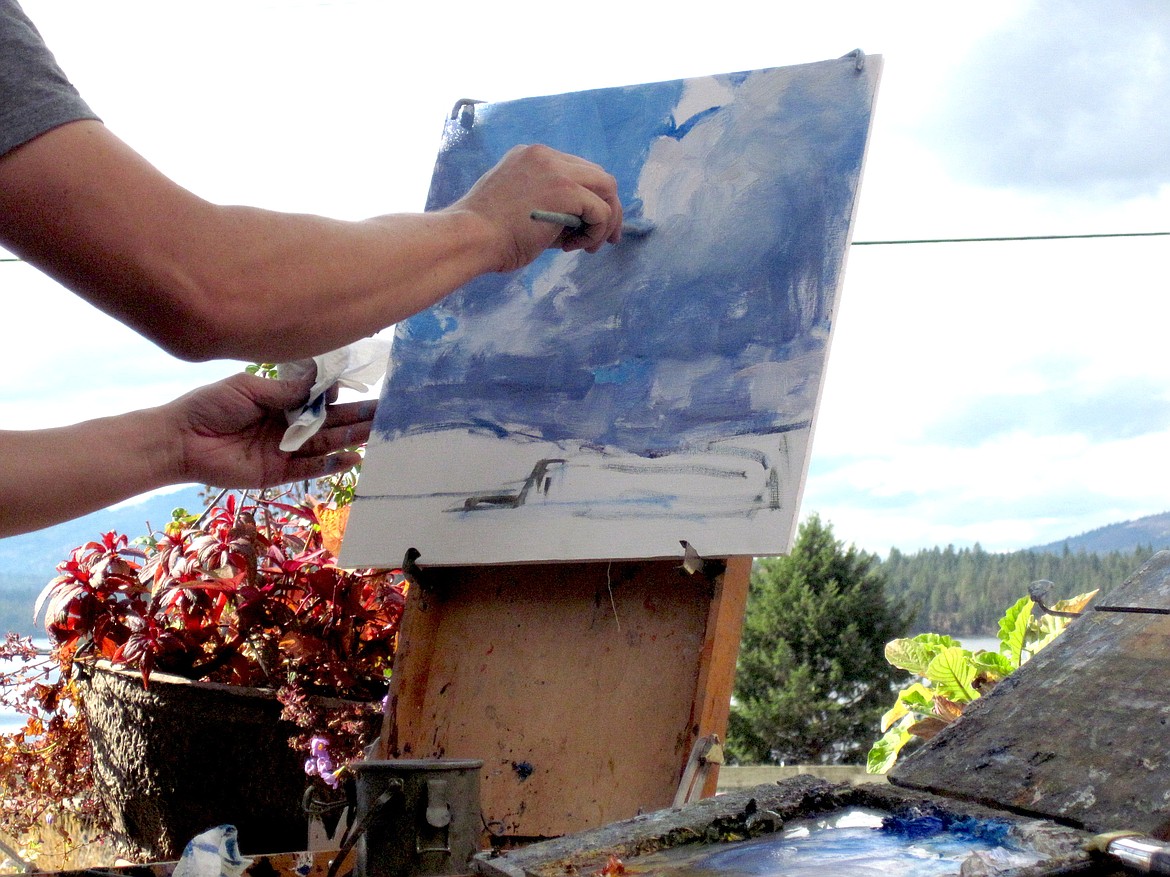 The proposed Scotchman Peaks Wilderness is a beautiful place. Its presence on the northeast edge of Lake Pend Oreille has attracted the attention of artists for decades. In that tradition, for the past nine years, Friends of Scotchman Peaks Wilderness (FSPW) and the Outskirts Gallery in Hope have hosted the Scotchman Peaks Plein Air Paintout. This event, to be held this year on Saturday, October 8, is a chance for artists from all over the Northwest to capture the beauty of the West Cabinets as well as the lake, Lightning Creek and the Clark Fork and Bull River valleys surrounding these rugged peaks.