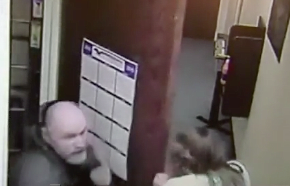 When cleaning staff unlocked the door, he ran into the main lobby and out the front door.