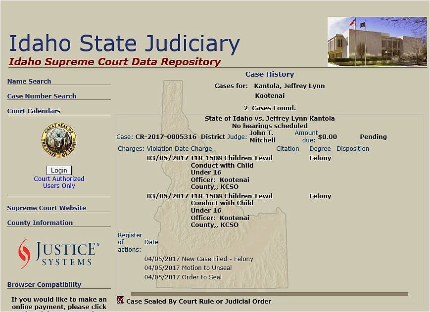 Jeff Kantola, who taught at Lake City High School, is accused of committing two counts of felony lewd conduct with a child under 16, according to the Idaho State Judiciary’s data repository.