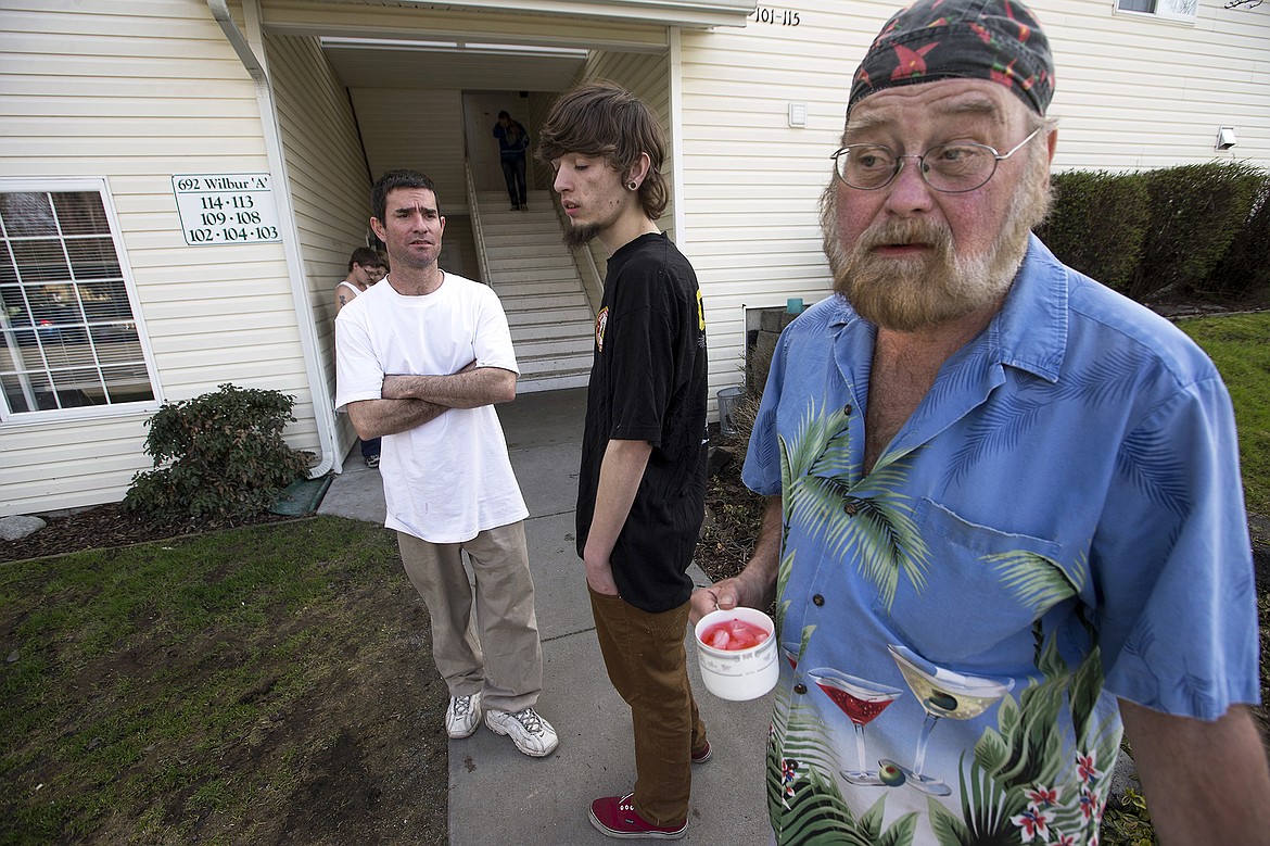 Neighbors in the Silver Lake Apartments on the 600 block of W. Wilbur Avenue in Coeur d’Alene gathered in the parking lot Wednesday where police the previous night used an armored SWAT vehicle, flash bangs and pepper gas to arrest James L. Crile Jr., 42, on a misdemeanor warrant following an eight-hour standoff.