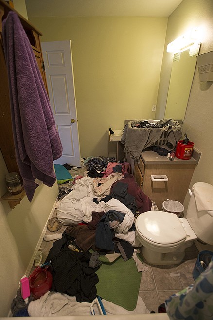Wednesday afternoon Austin Parent, who works for Whitewater Creek, owner of the apartment complex, fixed a door that police broke to enter Crile’s apartment. The air inside was still sharp with tear gas.