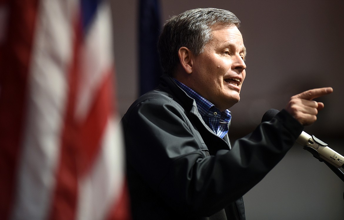 Senator Steve Daines speaking at a Greg Gianforte campaign event featuring Donald Trump Jr., on Friday, April 21.(Brenda Ahearn/Daily Inter Lake)