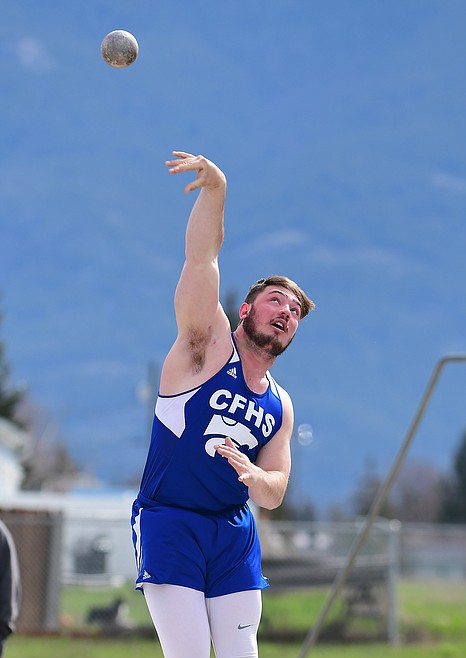 Shot Put — 1, Jesse Mecham, Frenchtown, 48-6. 2, Logan Kolodejchuk, Columbia Falls, 47-7.50. 3, Dillon Botner, Whitefish, 45-3. 4, Jacob Campbell, Hamilton, 44-7. 5, Logan Drown, Whitefish, 38-5.50. 6, Jacob Boggs, Browning, 37-9.50.