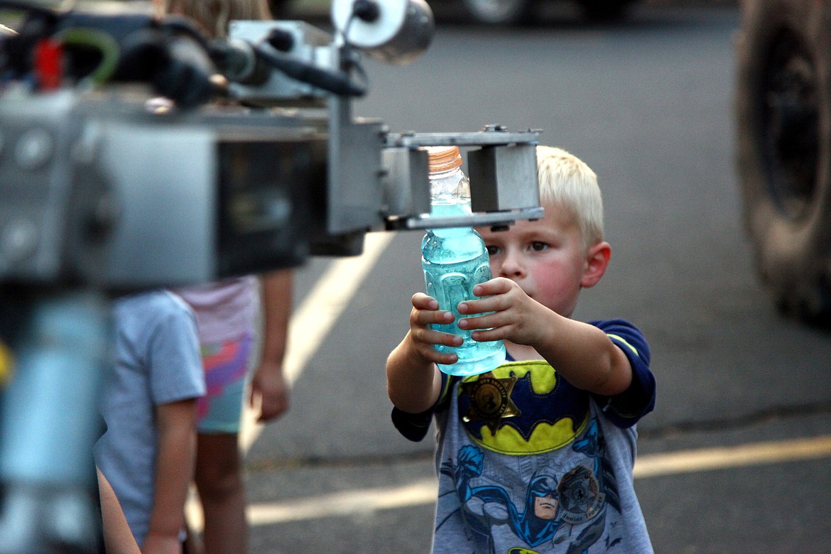 A little guy at the front of the line inched forward, sighted in the softball that looked more like a pumpkin in his little hand, and let fly a shot that bounced off the trigger, sending Cloud into the water. The audience of young ones queuing up let out a excited roar of support.