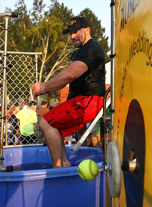 MOSES LAKE — Washington State Patrol officer Justin Cloud peeked to his left in anticipation as the kids lined up in front of the dunk tank Tuesday evening at McCosh Park.