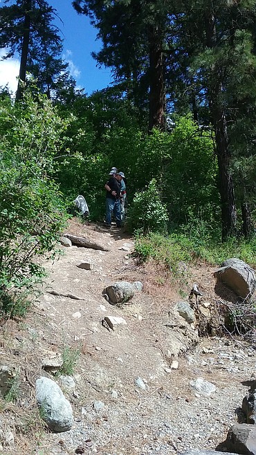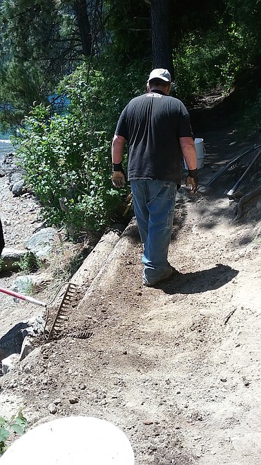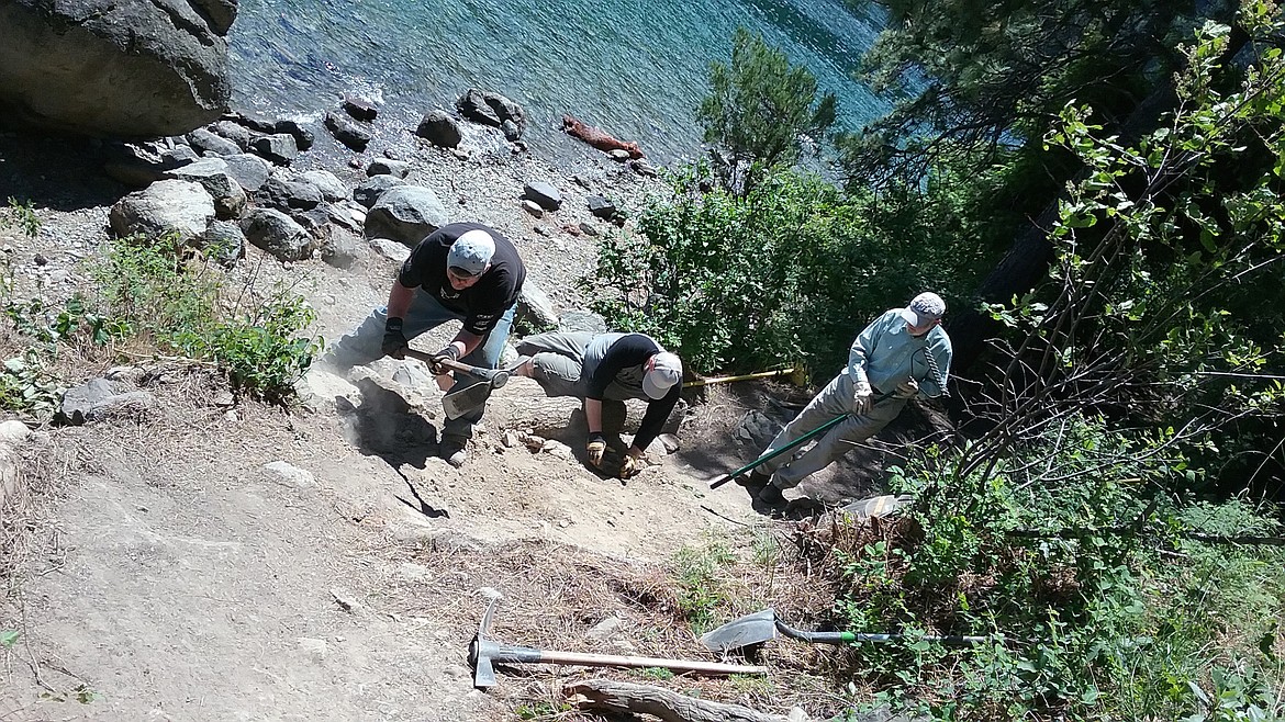 The group, consisting of Rusty Baillie of Dalton Gardens, John Bowman, Mountain View Cyclery owner, and Shane Myr, Two Wheeler Dealer general manager, had singled out a section of the Shoreline Trail in Farragut to upgrade.