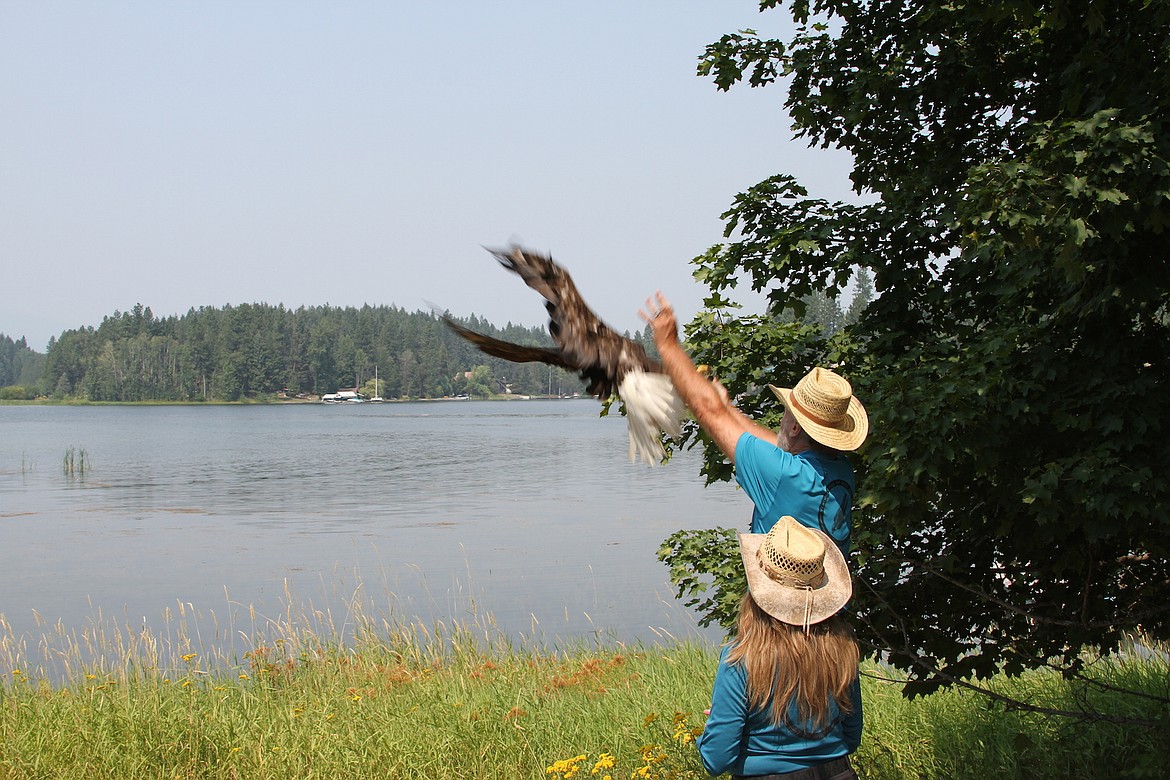 SANDPOINT — An injured bald eagle that was nursed back to health by Birds of Prey Northwest took to the skies over Lake Pend Oreille at Sunnyside without missing a wing beat on Friday.