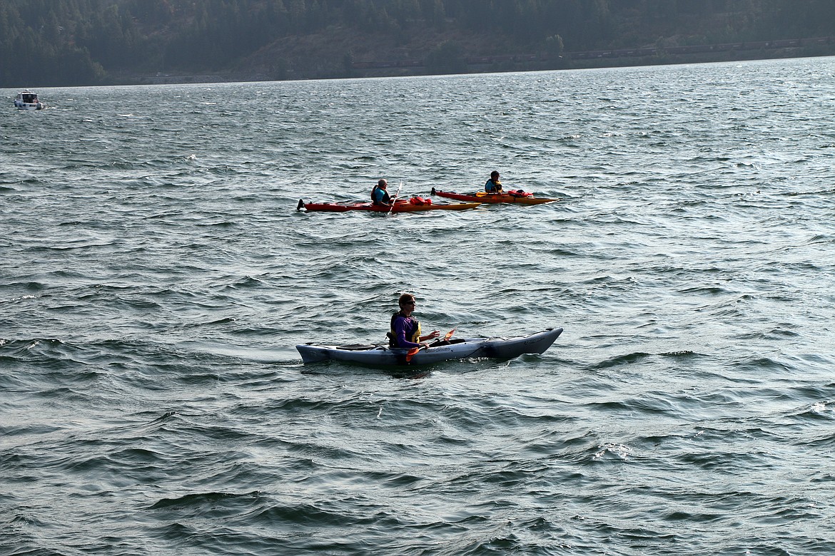 Swim officials had deployed some of its experienced safety boaters to test the waters of Lake Pend Oreille between Sagle and Sandpoint, but quickly pulled them out after reports of kayakers flipping and jet boaters getting swamped by the waves.